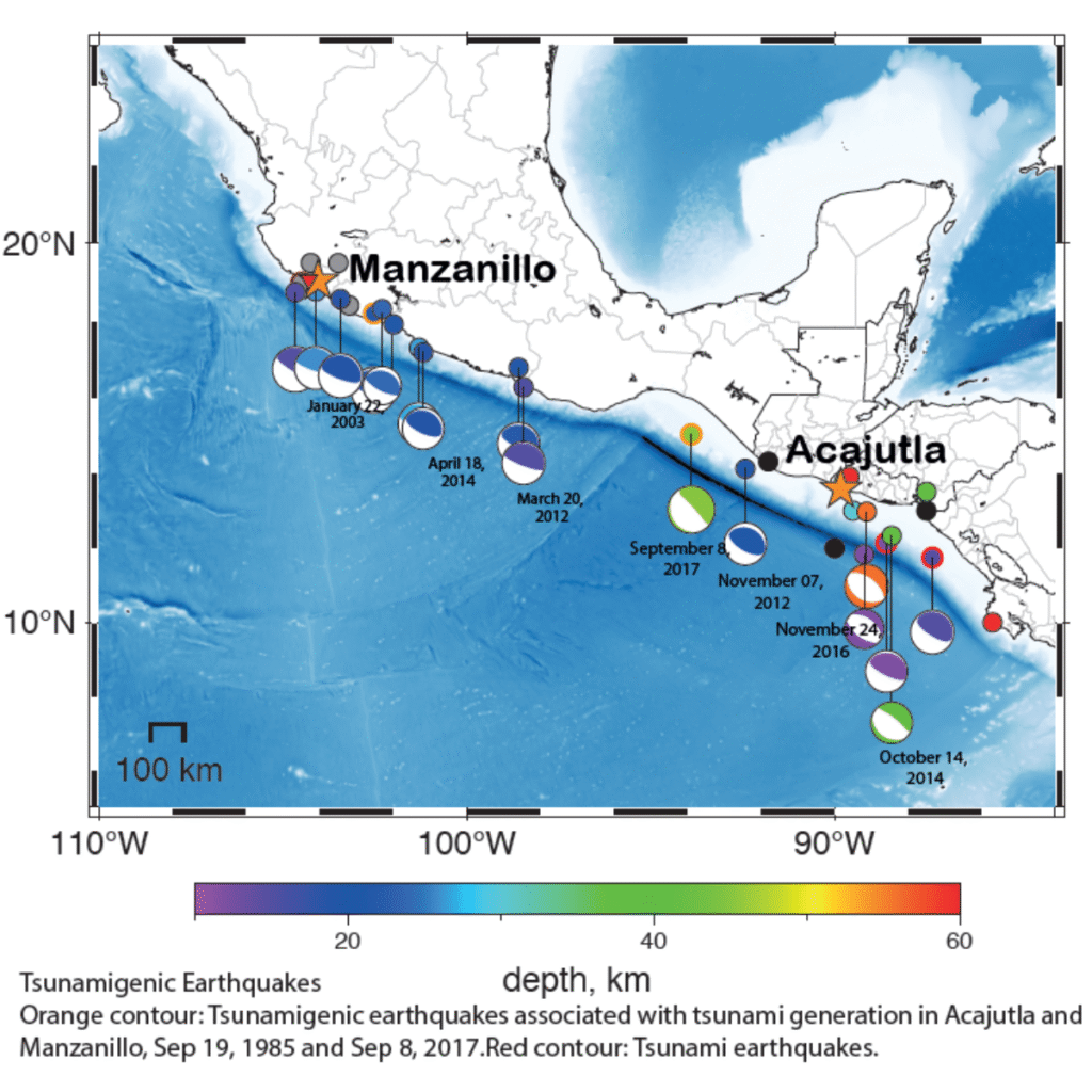 Sismos tsunamigénicos registrados que afectaron a Manzanillo, México y El Salvador